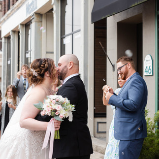 I have had a best friend since the moment we met in ninth grade choir class, Stephanie. No matter what, through many of life's ups and downs, we have always been there for each other. Stephanie always had the worst luck with men...that is until she met Adam and things took not just a turn but a leap in the best direction. Adam proposed New Year's Eve of 2020 (man what a way to go into 2021 with some optimism) and Stephanie let me know right away! Having already seen the absolute tragedy that was the 2020 wedding planning year, she knew that they just wanted something small, so she asked me if I would help her plan an intimate wedding. OF COURSE I WOULD!! It was the perfect timing as I had a photographer friend who had just recently opened a studio space and I thought it would be the perfect place to host a small event. I reached out to Sherri and she loved the idea, so we sat down and thought "Well, if one couple is looking for something like this, then that means other couples are out there too, right?" and our joint venture of a micro-wedding venue was born. We called it Main Street Mini Matrimony, a nod to our Main Street location in uptown Norwalk, Ohio, and something amazing was born. An all inclusive micro-wedding venue where literally everything is included for one incredibly low cost. Invitation design, florals, decor, the seating, the officiant and even the photographer!